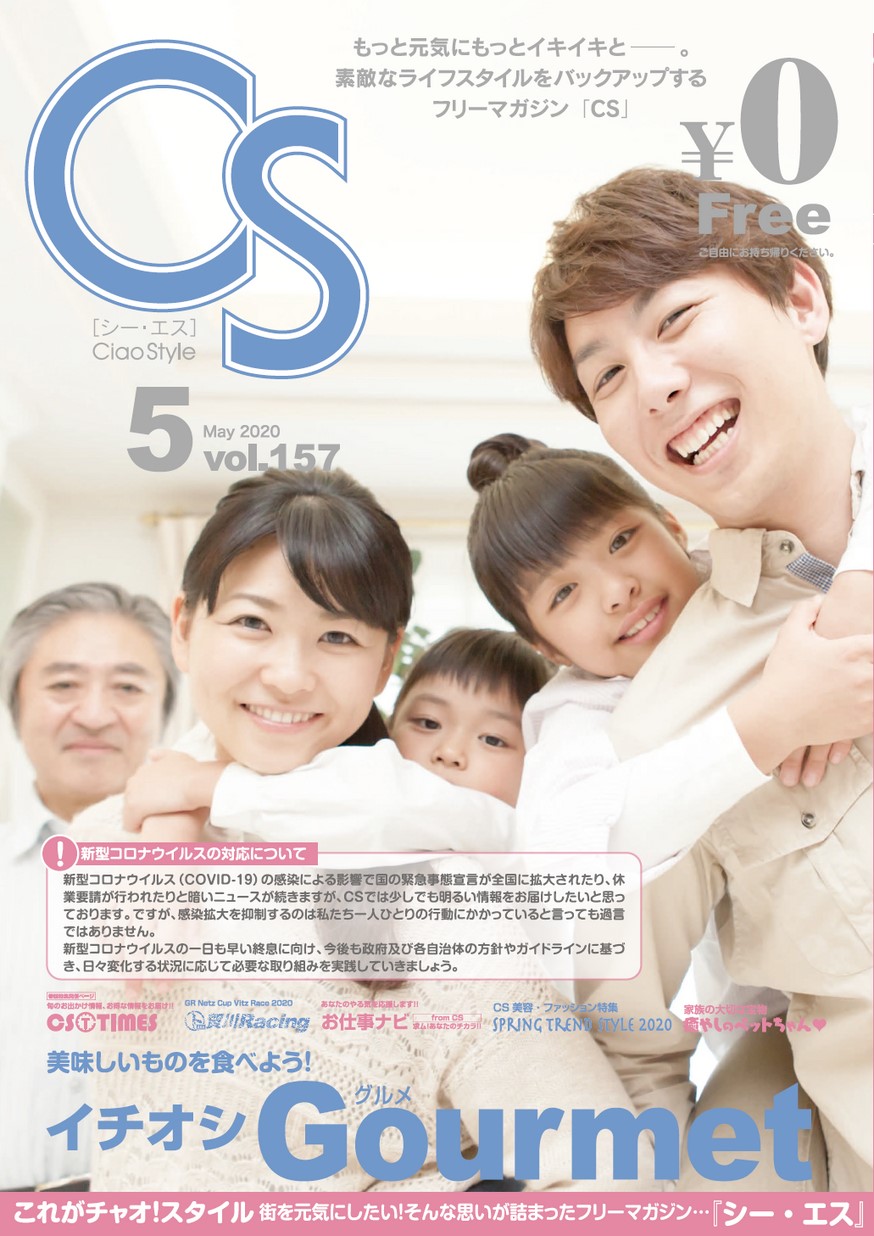 CS157号2020年4月25日発行 CONTENTS・美味しいものを食べよう!イチオシGourmet ・家族の大切な宝物 癒やしのペットちゃん♡ ・CS美容・ファッション特集 SPRING TREND STYLE 2020